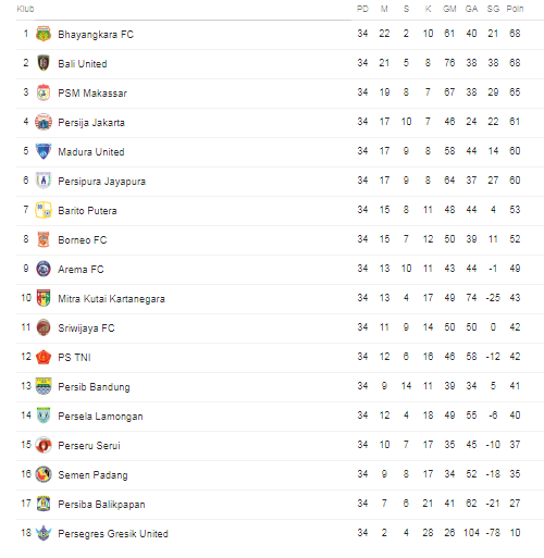 10 324 3 minutes read. Klasemen Akhir Liga 1 2017. PSM Makassar 2 2 Borneo FC.